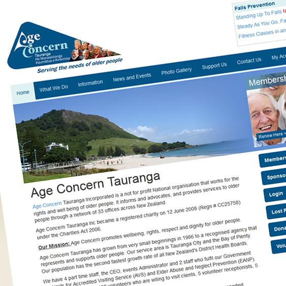 Age Concern look after the interests of elders in the community. The Tauranga branch needed a local site focusing on the news, events and activities happening in the area.