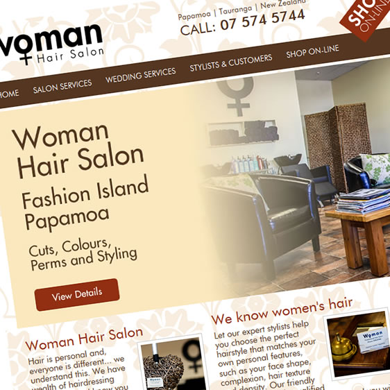 Woman Hair Salon are based in Fashion Island Papamoa. Stephanie has worked hard to build a great reputation in the area and has introduced online shopping facilities on this new site to complement her range of salon services. The site showcases an enviable range of testimonials from her stylists many happy customers.
